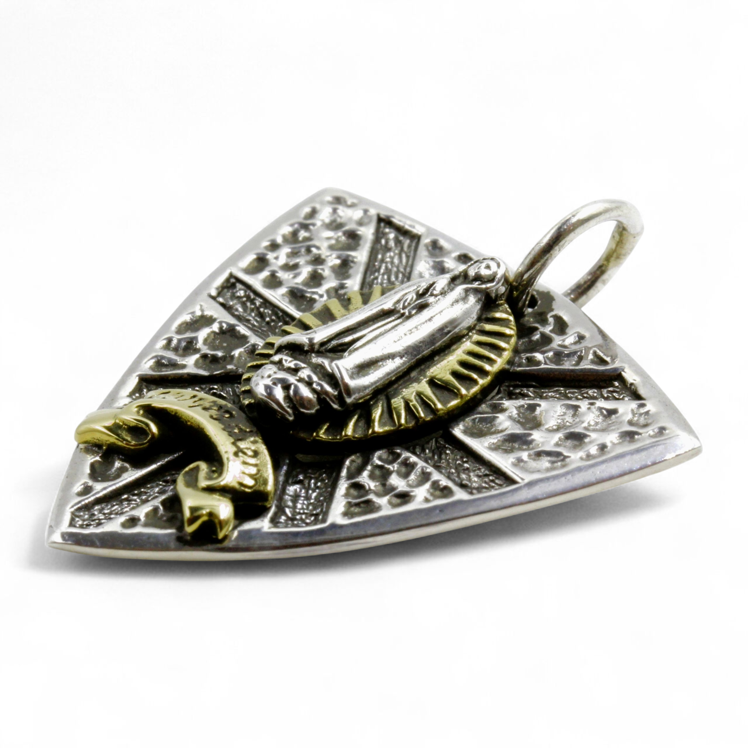 粗目の仕上げとユニオンジャック、マリアの珍しい組み合わせが面白いペンダントトップ。