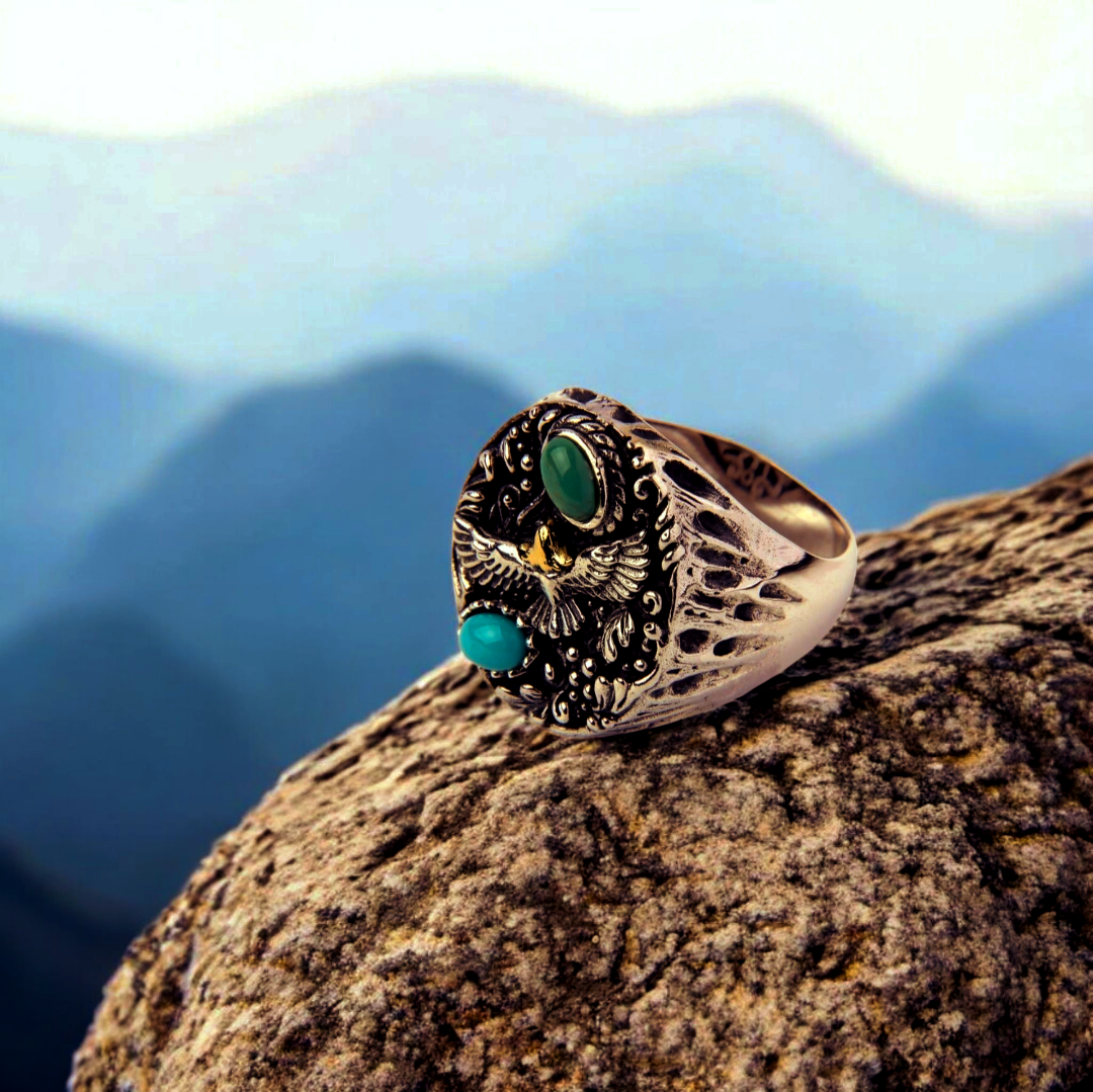 ツインターコイズ イーグル ネイチャーデザイン シルバーリング