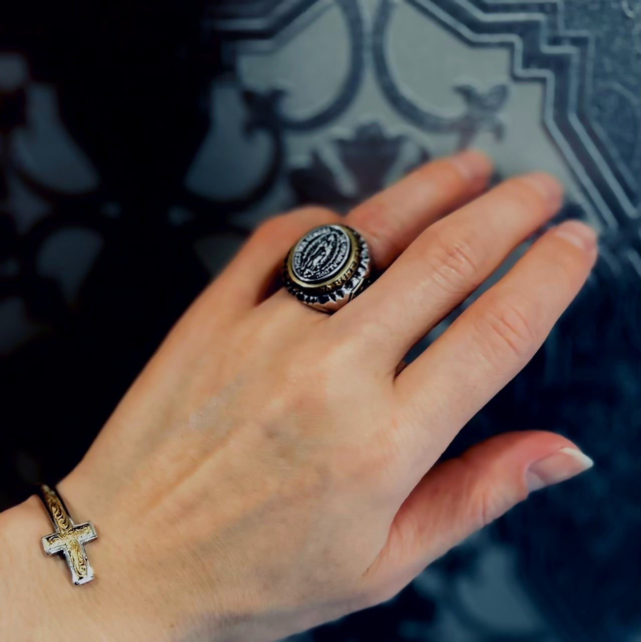 グアダルーペマリアのメダイをそのまま活かしたシルバーリング。