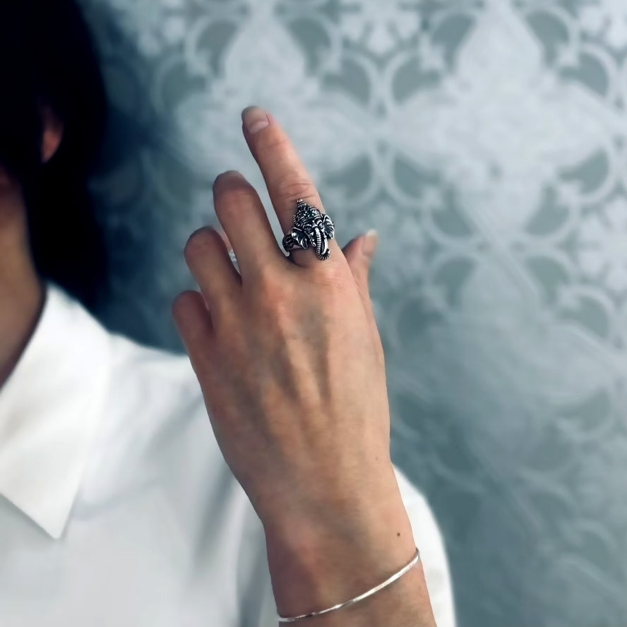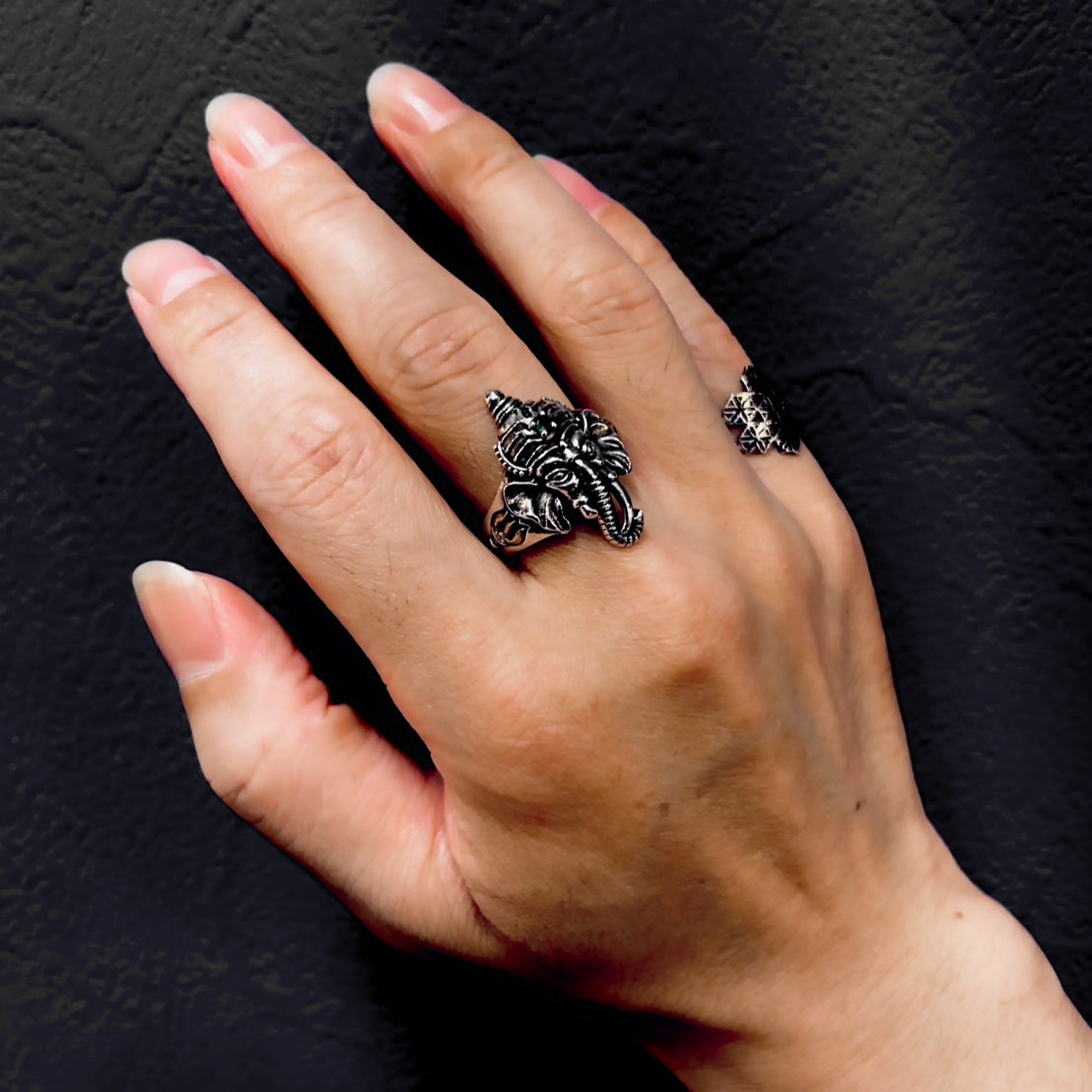 ヒンドゥー教の神の一柱である、「ガネーシャ」をモチーフにしたシルバーリング。